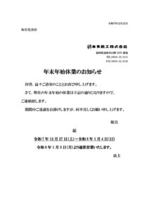 年末年始休業のお知らせ